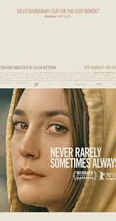 - Never Rarely Sometimes Always: This is a film that may leave viewers feeling that the adolescent issues hit close to home. Never Rarely Sometimes Always is a nail-biter filled with many emotions. The story of a teen who is pregnant with a life she feels disconnected from takes the risks to go from Pennsylvania to New York to have an abortion with her cousin tagging along for support. Autumn (played by Sidney Flanigan) takes strides to try to dismiss this big deal of a problem due to how her home-life already is. Her cousin Skylar (played by Talia Ryder) wants to be the best support, but with both being under 18 with very little money, the challenges they face in the big city of New York result in a range of emotions and obstacles. Director and writer Eliza Hittman delivers a film about trying to determine what is right to do in negative situations, but her directing also reminds viewers that it is never a bad idea to ask for help.