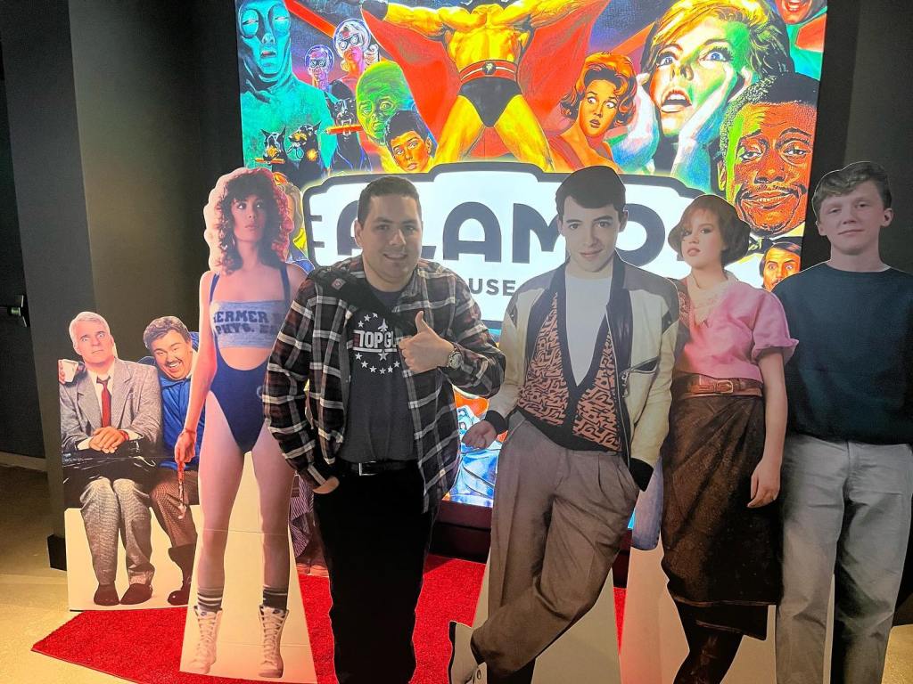 The Chicago location is dedicated to director John Hughes and includes memorabilia in the cinema and the lobby. This made my experience of Ferris Bueller’s Day Off (1986) very surreal in my first movie experience at Alamo Drafthouse Chicago. The staff provided sunglasses, American flags, and other gear to play along with the film. Alamo Drafthouse knows how to fuel the fun of its guests by making them feel like they are in the era of the film they are seeing. They also do this by playing trailers and ads from the year a movie was originally released. This special touch made it more fun and enthralling. Believe it or not, my cinema joy has never felt more special than at my first Alamo Drafthouse movie experience.